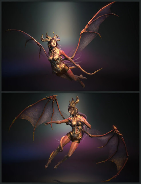 - 25 Hierarchical Poses for Tara 9: Dive into the many moods of Tara with poses that span from seductive elegance to fierce empowerment, each crafted to enhance Tara's unique features, including her wings, tail, and horns.